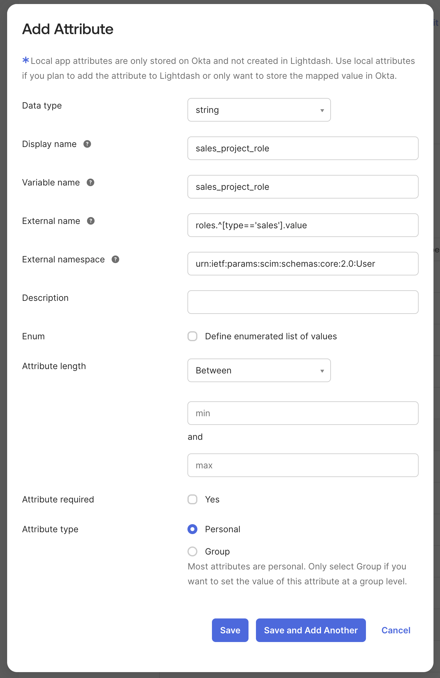 /Roles, use the manual configuration documented in your IdP. Remember: only the value is required by Lightdash.